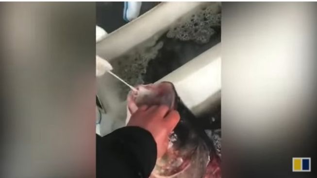 Fenomena ini terlihat melalui video viral yang memperlihatkan seorang nakes memasukan batangan kapas panjang ke hidung ikan hidup untuk tes Covid-19.