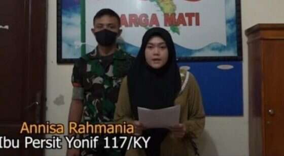 Seperti diberitakan PojokSatu (Jawa Pos Group), permintaan maaf itu disampaikan melalui video dengan didampingi oleh suaminya, Pratu (Prajurit Satu) Gilang Rinaldi, anggota Batalyon Infanteri (Yonif) 117/Ksatria Yudha (KY).