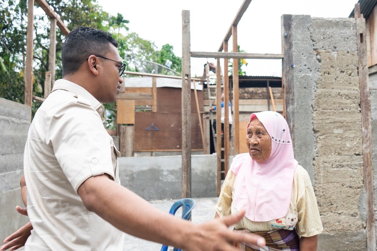 Selain melihat progres pembangunan, Safaruddin juga menemui dan berbincang dengan penerima batuan. Bahkan, ia turut masuk ke dalam melihat kondisi rumah penerima bantuan yang masih berlantaikan tanah, berdinding kayu, dan beratapkan rumbia.
