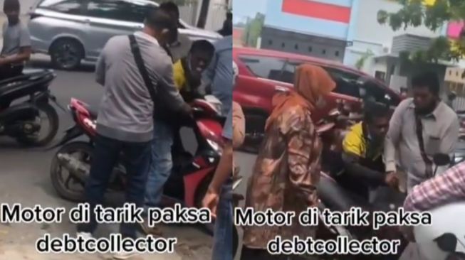 Dalam keterangan video dijelaskan bahwa komplotan mata elang mencoba mengambil motor pengendara yang sudah lunas.