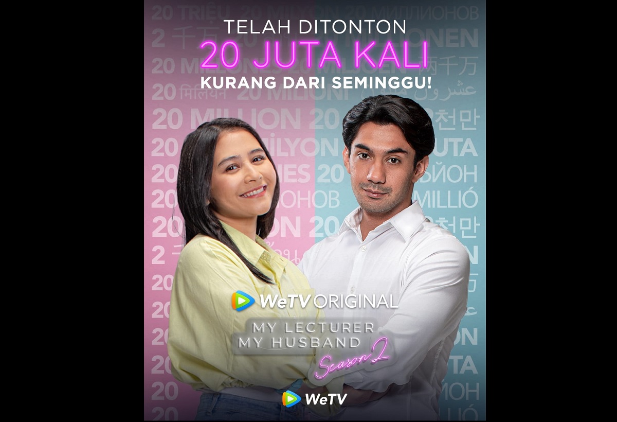 BANDA ACEH – Tayang setiap Jumat dan Sabtu pukul 18:00 WIB, WeTV Original My Lecturer My Husband Season 2 telah mencetak rekor yang mencengangkan. Tidak hanya langsung menduduki posisi trending no 1 setelah tayang, namun juga telah mencapai rekor yang luar biasa. Platform streaming video WeTV mencatat series produksi MD Picture itu telah ditonton lebih dari 20 juta kali dalam waktu kurang dari 1 minggu penayangan.