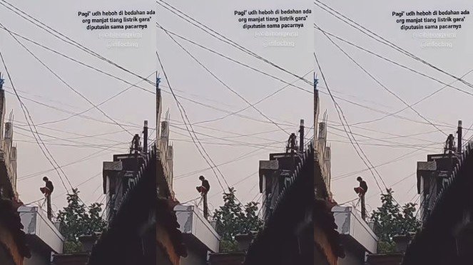 “Pagi-pagi udah heboh di Bedahan ada orang manjat tiang listrik gara-gara diputusin sama pacarnya,” tulis narasi dalam video tersebut.