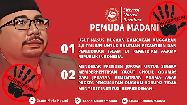 Diketahui, rencananya Pemuda Madani akan menggelar Aksi di Depan Gedung Merah Putih KPK pada Kamis 9 Juni 2022 dan Jumat 10 Juni 2022. Adapun tuntutan Aksi ini adalah meminta Kejaksaan Agung dan KPK untuk segera mengusut bancakan Anggaran 2,5 Triliun tersebut. Serta meminta kepada Presiden untuk segera memberhentikan Menteri Agama Yaqut Cholil Qoumas dari Menteri Agama Republik Indonesia.