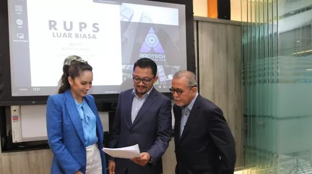 “Hari ini, kami secara resmi menapakkan kaki dan jejak bisnis kami menekuni industri EBT. Tonggak sejarah baru bagi PT Protech Mitra Perkasa Tbk. Kami juga mengumumkan secara resmi pergantian nama Perseroan menjadi PT Maharaksa Biru Energi Tbk, sekaligus mengganti logo sebagai identitas diri. Saya nyatakan di sini bahwa ke depan kami memang akan serius menekuni industri hijau yang beromzet trliunan rupiah,” kata Bobby kepada wartawan usai RUPS.