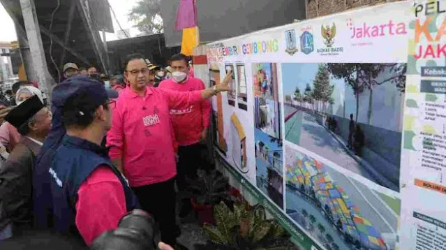Hari ini Anies melakukan peletakan batu pertama alias groundbreaking pembangunan ulang kampung tersebut yang rencananya dinamakan Kampung Gembira Gembrong.