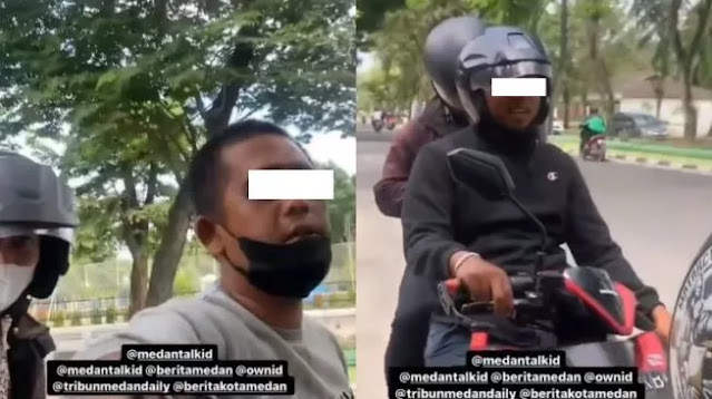 Pada video yang beredar, terlihat empat orang pria dalam dua motor menghentikan sepeda motor lain.