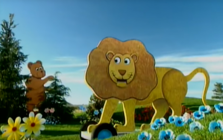 Pertama muncul sang beruang yang dikejar oleh seekor singa. Namun kedatangan beruang cukup membuat takut para Teletubbies.