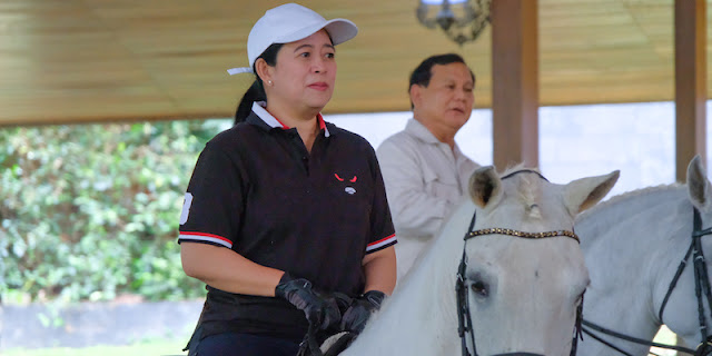 Sebelum berbincang 4 mata, Puan pun sempat diajak Prabowo menaiki kuda kesayangannya.