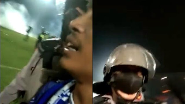 “Pak, jangan tembak gas air mata pak. Banyak anak kecil pak,” ujar suporter tersebut kepada polisi.