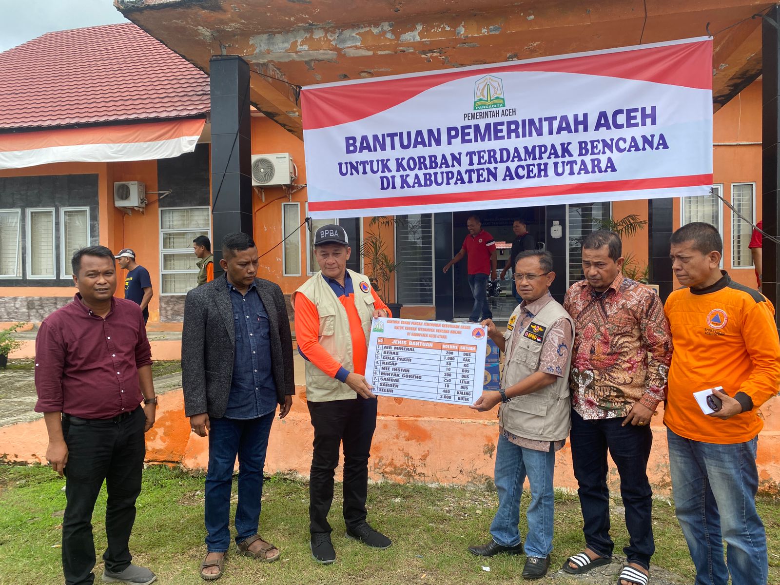 BPBA bersama Pemerintah Aceh dan DPR Aceh turut membawa satu unit tenda dan dua unit boat fiber lengkap dengan mesinnya ke Aceh Utara. Selain itu, kunjungan rombongan DPR Aceh bersama Pemerintah Aceh tersebut juga turut membawa bantuan bahan pokok untuk tahap pertama yang nominalnya mencapai Rp 200 juta.