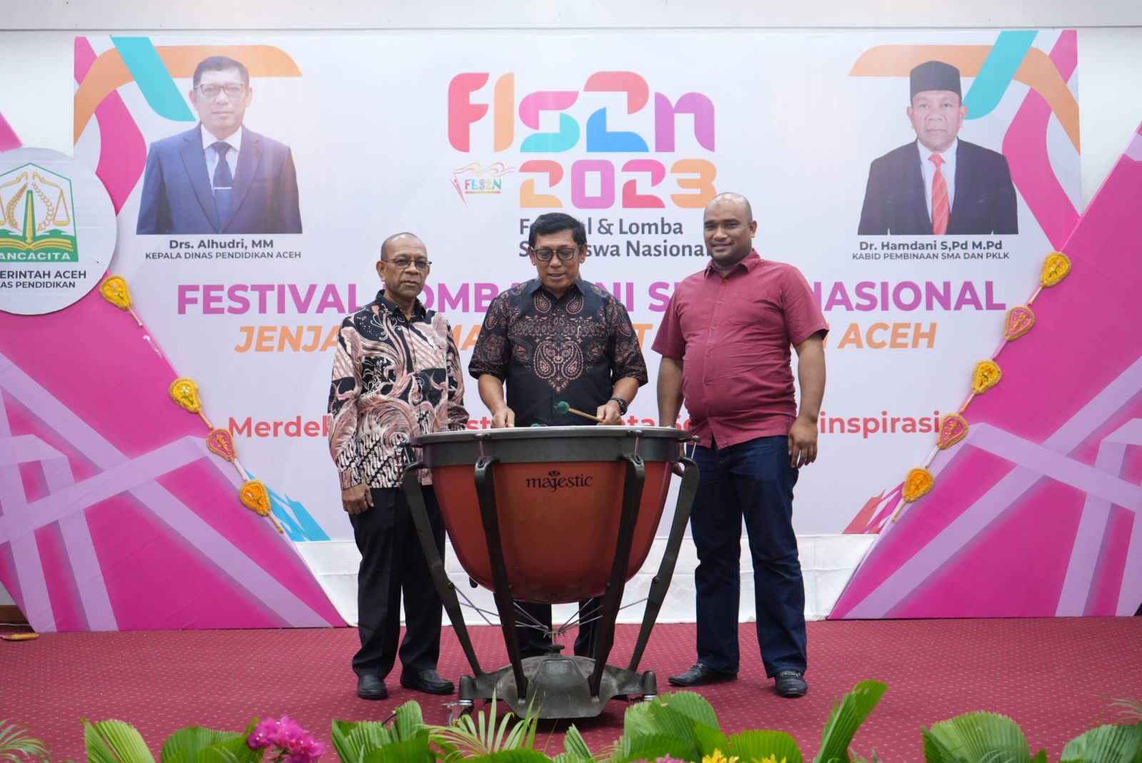 “Saya berharap anandaku sekalian juga memiliki penikiran kritis serta kreatif mengikuti perkembangan global. Namun semua itu harus dilakukan dengan tetap melestarikan nilai-nilai kearifan lokal yang selaras dengan profil pelajar Pancasila,” ujar Alhudri di sela-sela pembukaan Festival dan Lomba Seni Siswa Nasional (FLS2N) jenjang Sekolah Menengah Atas (SMA) se Provinsi Aceh, Sabtu, 8 Juli 2023.