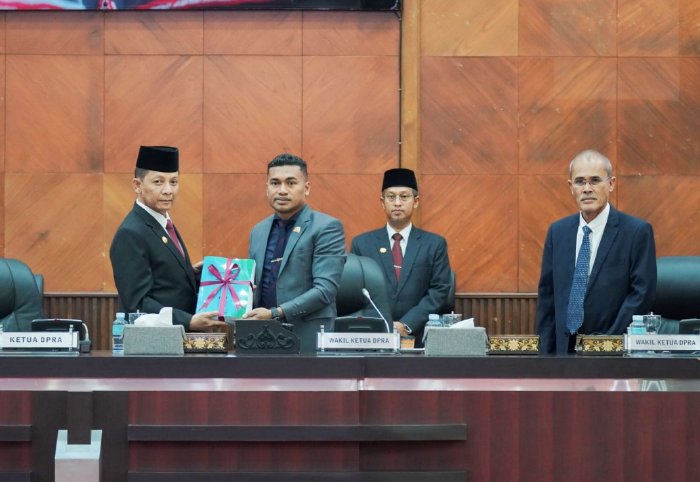 Rapat Paripurna yang digelar di Gedung Utama DPRA, Banda Aceh, itu dipimpin oleh Wakil Ketua DPRA Safaruddin, S.Sos, M.S.P dan didampingi oleh H. Dalimi, SE. Ak, CA. Rapat juga dihadiri oleh Penjabat (Pj) Gubernur Aceh, Achmad Marzuki yang didamping para Asisten Sekretaris Daerah (Sekda) serta para Kepala Satuan Kerja Perangkat Aceh (SKPA) Pemerintah Aceh.