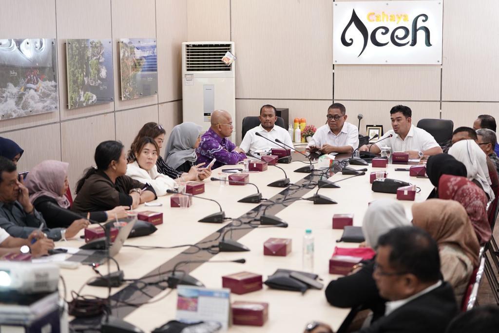 HARIANACEH.co.id|Banda Aceh – Dinas Kebudayaan dan Pariwisata (Disbudpar) Aceh menggelar rapat persiapan akomodasi Pekan Olahraga Nasional (PON) ke XXI bersama Asosiasi Perhotelan di Aula Rapat Disbupdar Aceh, Rabu, 6 Desember 2023.
