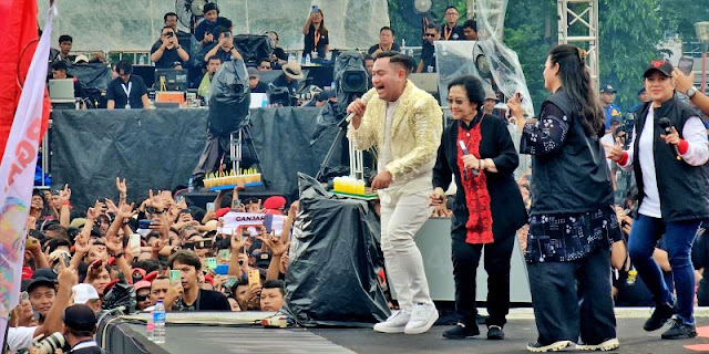 Pantauan Kantor Berita Politik RMOL, Megawati turut menyanyikan lagu dangdut berjudul Cinta Hampa karya DLloyd setelah diajak oleh pedangdut yang akrab disapa King Nassar itu.