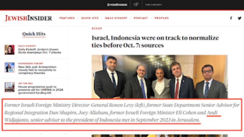 Sumber-sumber Jewish Insider mengatakan Indonesia saat itu memantau perkembangan normalisasi hubungan Israel dengan Arab Saudi, yang kini terhambat karena Riyadh mensyaratkan gencatan senjata di Gaza dan pembentukan negara Palestina sebelum negosiasi berlanjut.