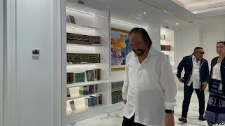 Tepat di depan para awak media Paloh menundukan kepalanya sedikit dan segera berlalu ke depan lift yang sudah disiapkan oleh para petugas keamanan. Saat pintu lift terbuka, Paloh langsung masuk ke dalam lift.