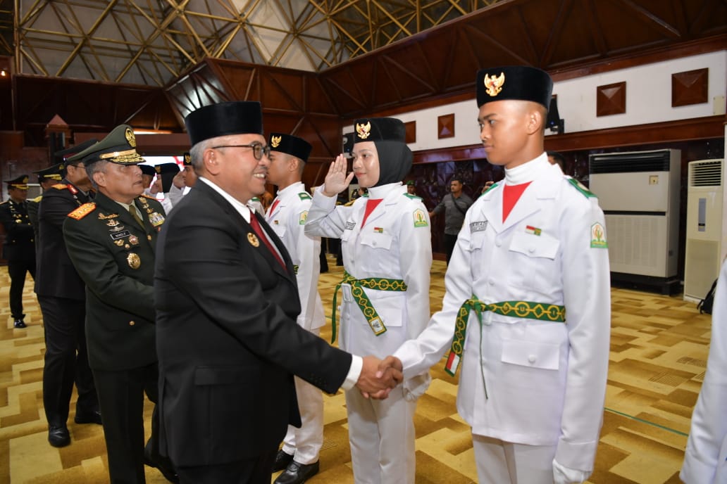 BANDA ACEH – Penjabat (Pj) Gubernur Aceh, Bustami, pada Jumat (16/8) secara resmi mengukuhkan anggota Pasukan Pengibar Bendera Pusaka (Paskibraka) Aceh yang akan bertugas pada upacara peringatan Hari Ulang Tahun (HUT) Republik Indonesia ke-79 di lapangan Blang Padang, Banda Aceh.