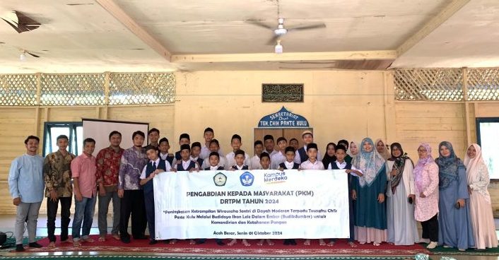 BANDA ACEH – Dosen dan mahasiswa Sekolah Tinggi Ilmu Kehutanan (STIK) Pante Kulu melaksanakan kegiatan Pengabdian Kepada Masyarakat (PKM) di Dayah Modern Terpadu Teungku Chik Pante Kulu, Gampong Beurabung, Kecamatan Darussalam, Kabupaten Aceh Besar pada Selasa, 1 Oktober 2024. Kegiatan ini bertujuan untuk meningkatkan keterampilan wirausaha santri, khususnya dalam bidang ketahanan pangan.