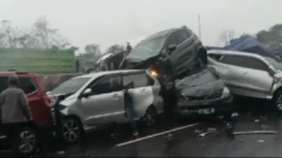 Diketahui, kecelakaan beruntun antara sebuah truk dan 17 minibus itu terjadi pada Senin (11/11) sore. Jasa Marga mencatat satu orang meninggal dunia dan puluhan lainnya mengalami luka-luka.