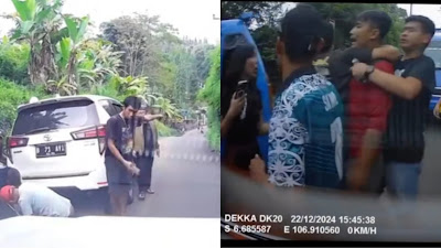 Lebih lanjut, mobil korban kemudian dipukul oleh orang di luar mobil. Tidak terima, perempuan di kursi penumpang yang terprovokasi jadi beradu mulut dengan warga sekitar.