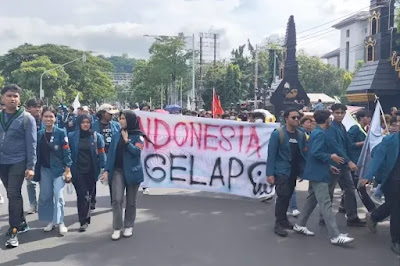 Di Jakarta, aksi berlangsung di kawasan Patung Kuda Monas dekat Istana Negara. Demonstrasi #IndonesiaGelap juga terjadi di Surabaya, Malang, hingga Makassar.