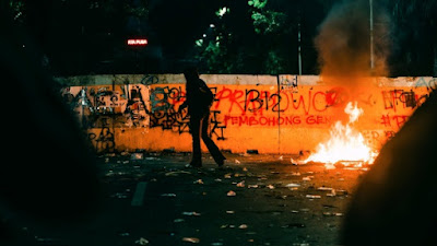 Hingga berita ini diturunkan massa masih bertahan dan mulai melakukan aksi pembakaran di Bundaran MH Thamrin.