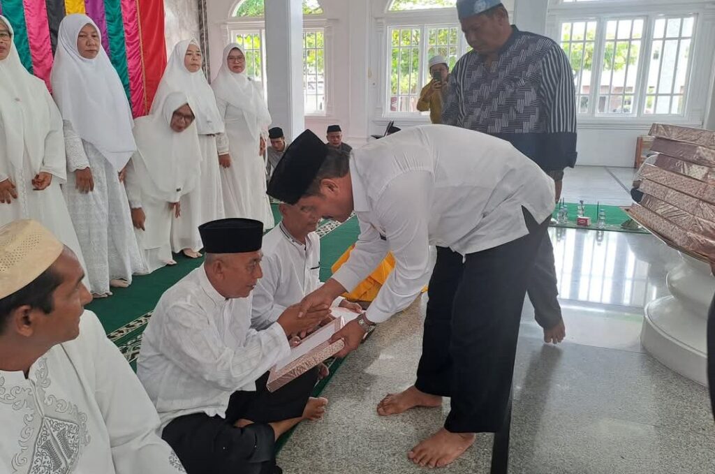 BANDA ACEH – Wakil Bupati Aceh Besar, Syukri A Jalil melepas keberangkatan Jamaah Calon Haji (JCH) guru, kepala sekolah, pengawas sekolah jenjang PAUD, SD, dan SMP lingkup Dinas Pendidikan dan Kebudayaan (Disdikbud) Aceh Besar, di Masjid Gani, Kecamatan Ingin Jaya, Aceh Besar, Kamis (15/5/2025).
