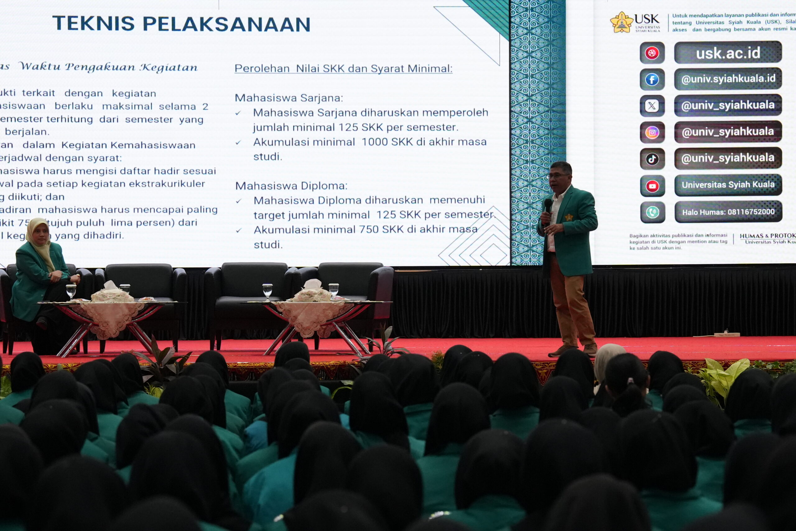 Menambahkan penjelasan tersebut, Enzus Tinianus, selaku Kepala Bagian Kemahasiswaan USK, menyampaikan pentingnya peran Unit Kegiatan Mahasiswa (UKM) dalam menyalurkan minat dan bakat mahasiswa.