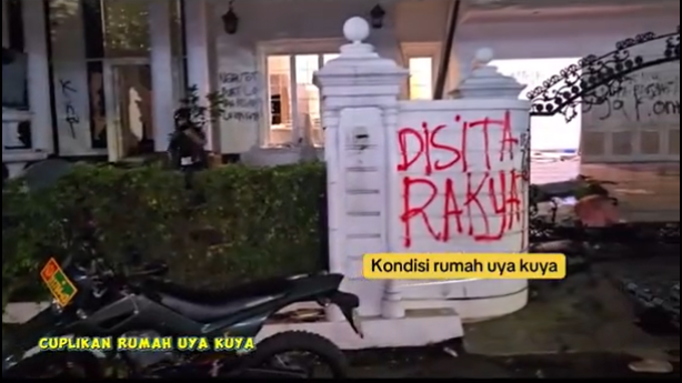 Massa berhasil merobohkan pagar rumah Uya Kuya dan langsung menerobos masuk hingga ke lantai dua untuk menjarah apa pun yang ada di rumah tersebut.