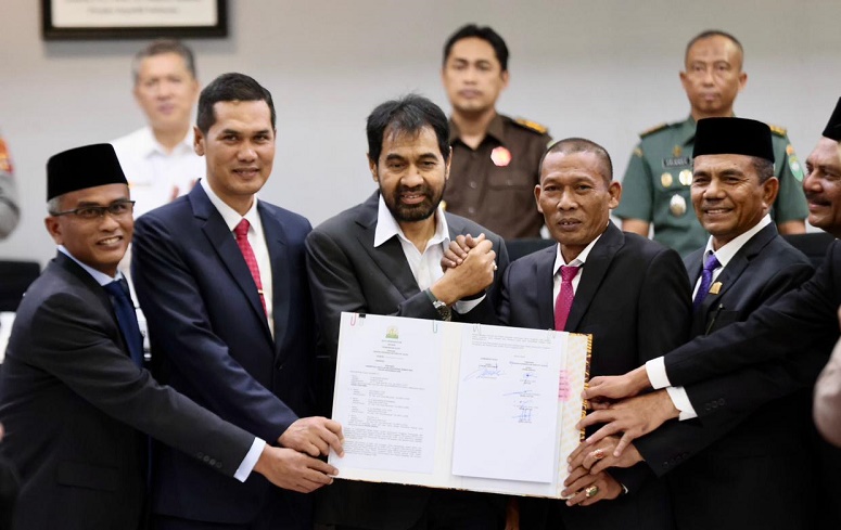 Penandatanganan dilakukan langsung oleh Gubernur Aceh, H. Muzakir Manaf, bersama para pimpinan DPRA.