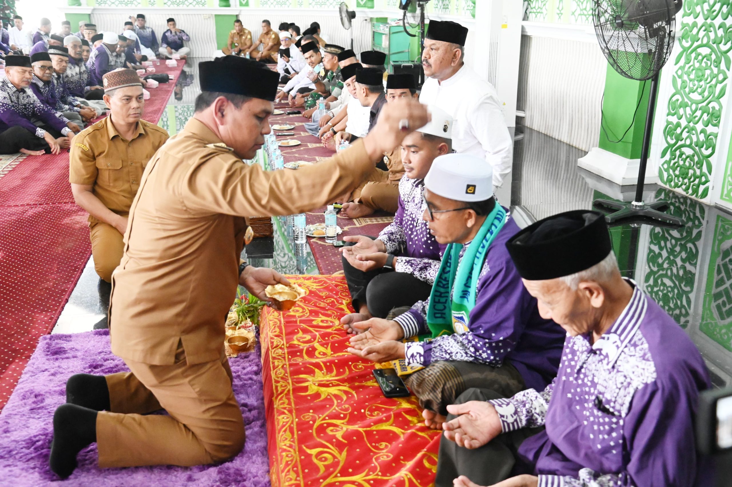 Prosesi pelepasan tersebut dilaksanakan dengan tradisi tepung tawar “Peusijuek” yang berlangsung khidmat dan turut hadiri, Wakil Bupati Aceh Besar Syukri A Jalil, Plt Sekda Bahrul Jamil, Ketua DPRK Aceh Besar Abdul Muchti, Dandim 0101 KBA, Kapolres, Kajari, Ketua Pengadilan, Ketua Mahkamah Syariah, Ketua MPU, para Asisten Sekdakab, Kepala OPD, Ketua TP-PKK, Wakil ketua TP-PKK serta para camat, di Masjid Agung Al Munawwarah Kota Jantho, Aceh Besar, Senin (19/05/2025).