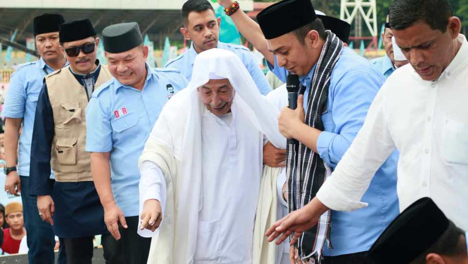 SERANG – Relawan Nderek Guru (Ndraru) menggelar sholawat bersama para santri dan ulama pada Sabtu (27/1/2024) di Stadion Maulana Yusuf, Kota Serang. Sholawat bersama tersebut digelar dalam rangka upaya bersama untuk mewujudkan pelaksanan Pemilu 2024 yang lancar dan damai.